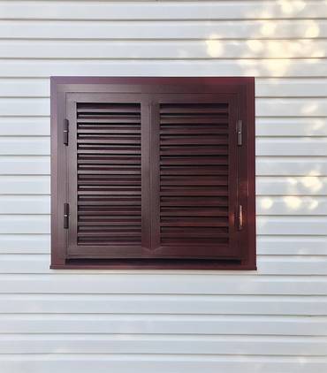 Одностворчатые ставни-жалюзи на окна арт.КД-215 предназначены для установки в офис, загородный дом, дачный коттедж, магазин. Модель сочетает защитные функции с возможностью естественной вентиляции и частичного освещения. Конструкция выполнена из металлической полосы с элементами толщиной от 2 мм, соединёнными методом сварки, что обеспечивает прочность и устойчивость к внешним воздействиям.